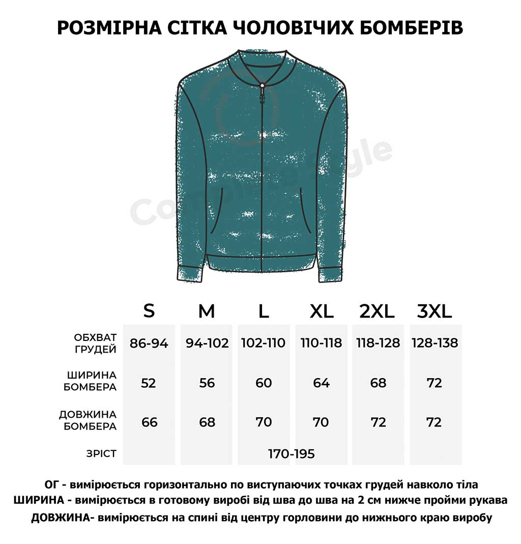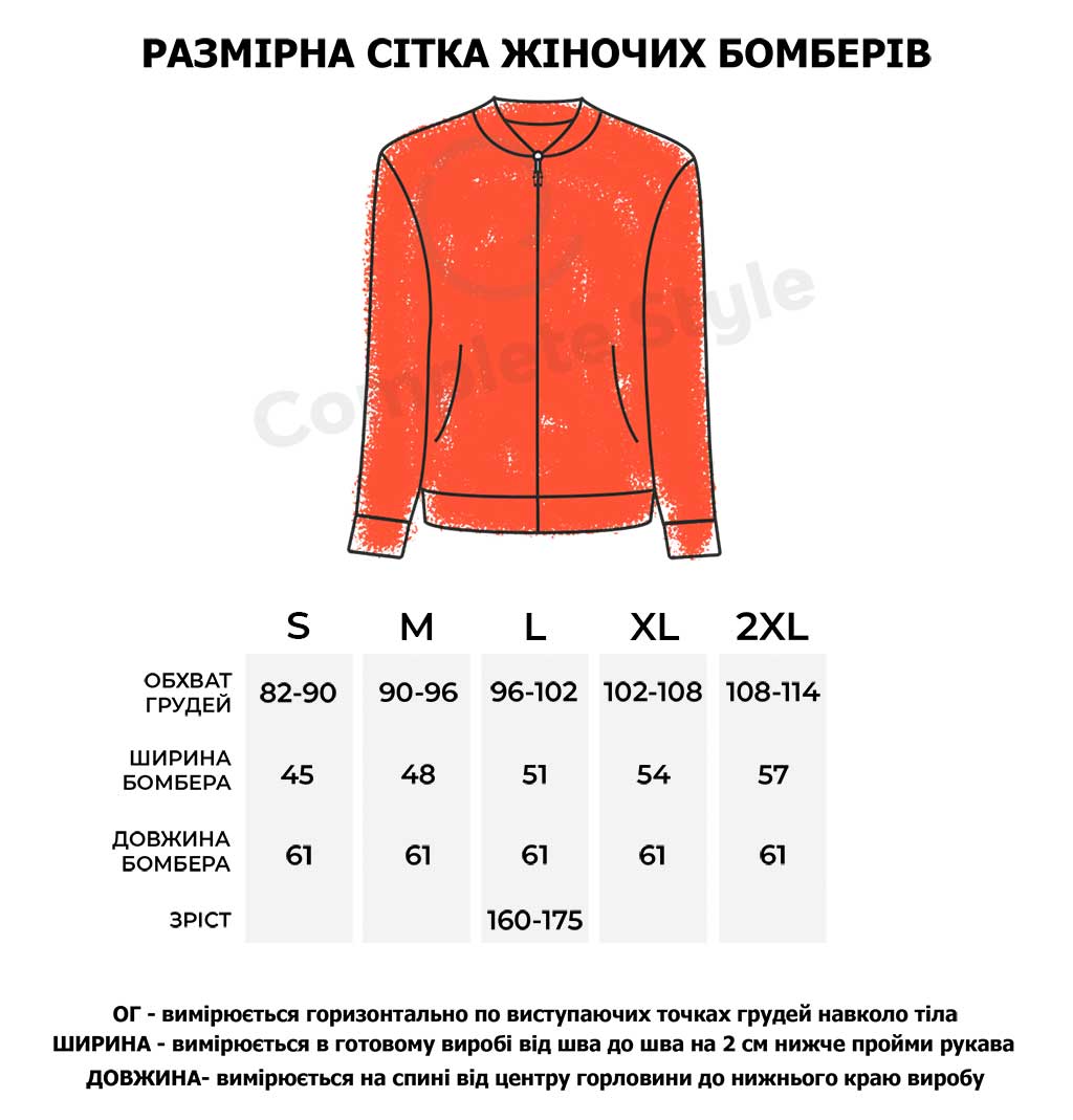 Бомбер прямого кроя на молнии. Размерный ряд для женщин и мужчин от S до 2XL. Карманы втачные. Вырез горловины круглый. Пояс, манжеты и горловина куртки выполнены из плотной резинки – кашкорсе. Внутренний шов горловины обработан киперной лентой, которая усиливает ее износостойкость. Пояс бомбера, пройма рукава, молния и горловина отделаны дополнительной отстрочкой, что усиливает износостойкость изделия и визуально подчеркивает идеальное качество пошива. Молнии мы можем устанавливать как дешевые китайские, так и дорогие японские - YKK. В боковом шве бомбера вшит размерник с указанием состава ткани, пола и размером изделия.