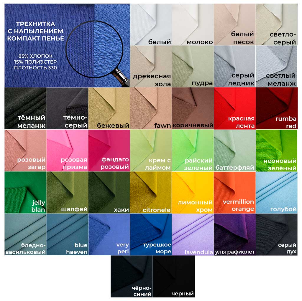 Для нанесения изображений подойдут: DTF печать, компьютерная вышивка, шелкотрафарет и прямая печать.