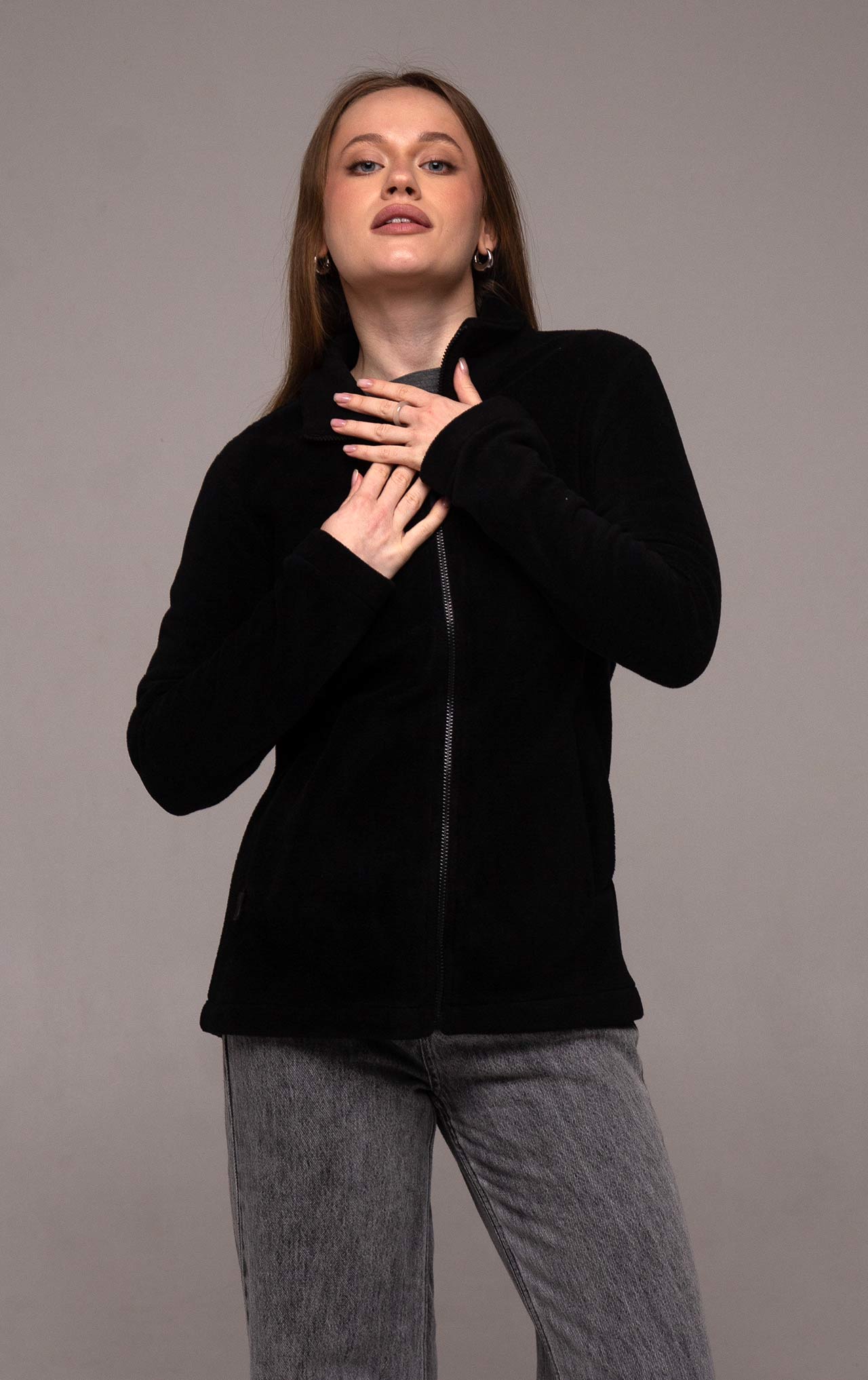 Флисовая кофта - это кофта на молнии, без капюшона, с двумя боковыми глубокими втачными карманами на молнии и высоким воротником, который хорошо защищает шею от ветра, но не достает до подбородка. Молнию можем ставить любого качества под ваш бюджет — пластиковую, тракторную, спиральую или металлическую. Бюджетный вариант - это Китай и дорогой - Япония (YKK). На замках молнии мы ставим пуллеры. Это дополнительная навесная часть на бегунок молнии, которая делает процесс застегивания/расстегивания молнии гораздо более удобным.