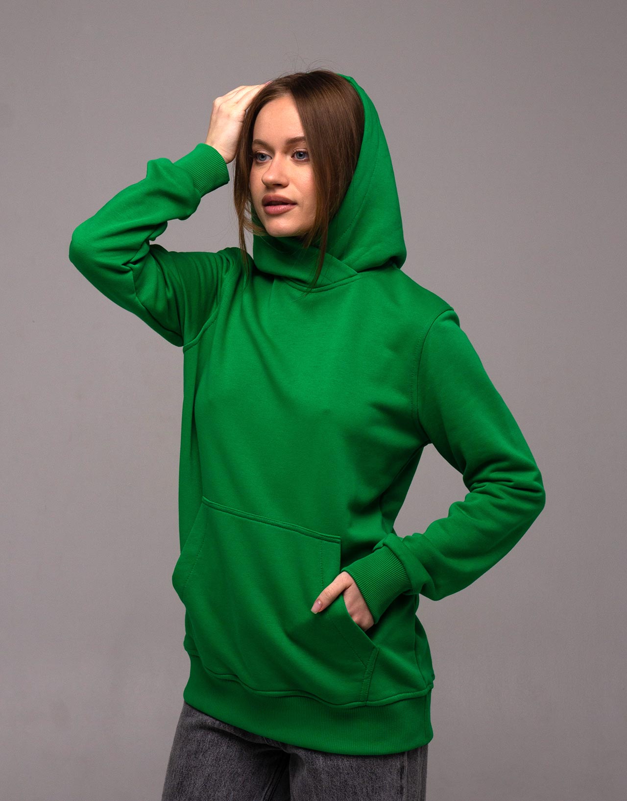 Худі прямого крою для чоловіків і жінок. Довгі рукави. Виріз горловини круглий. Капюшон подвійний, теплий, має гарну форму і може бути виконаний в іншому кольорі тканини з середини. В капюшон ми можемо ставити шнурок будь-якої форми та кольору. Пояс і манжети виконані із щільної гумки-кашкорсе. Внутрішній шов горловини оздоблений кіперною стрічкою, яка посилює її зносостійкість. Пояс худі, пройма рукавів і горловина оздоблені додатковою відстрочкою. В боковому шві худі вшитий розмірник з вказанням складу тканини, статі та розміром виробу. Для нанесення зображень підійдуть: прямий друк, DTF друк, шовкодрук та комп'ютерна вишивка.